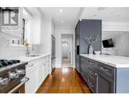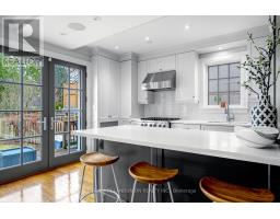 Chic, sophisticated country living in the city. Nestled in the highly sought-after Otter/Kimbark enclave (John Ross and Lawrence Park CI school district), this exceptional 2-storey, 3-bedroom turnkey home showcases outstanding renovation with design attributed to esteemed designer Richard Wengle. Step into the open concept first floor, where sun-lit living spaces are framed by floor-to-ceiling French doors opening out to the backyard oasis. The stunning dream kitchen offers marble countertops, stainless steel appliances, abundant cupboard space, and a sun-lit breakfast bar with added seating. Elegant hardwood floors, crown moulding, pot lights, and wainscoting enhance the refined interior, while built-in speakers, abundant storage space, and a Murphy bed in the basement add modern functionality. The property offers three generously sized bedrooms and two beautifully renovated bathrooms with luxurious marble finishes and heated floors, every detail has been thoughtfully curated. Step outside to a walk-out tiered deck and a private, landscaped garden complete with built-in front and rear irrigation. Relax or entertain under beautiful cherry blossom trees that grace the backyard, creating a stunning display of blossoms when in full bloom. The front yard features a recently paved interlock private driveway that easily parks four cars. Ideally located within the highly coveted John Ross Roberston PS and Lawrence Park CI, and steps to top private schools including Havergal, Bialik, UCC, and BSS. This home offers a rare blend of luxury, comfort, and prime location. (id:29237)
