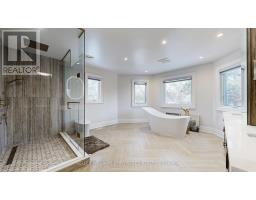 Exceptional fully renovated luxury home in prestigious Banbury-Don Mills on a prime 62 x 140 ft corner lot. Offering over 7,000 sq. ft. of finished living space, this grand detached 2-storey residence was renovated top to bottom in 2022 and features 5 bedrooms, 7 full bathrooms, an open-to-above foyer, elegant spiral staircase, expansive principal rooms, large windows, and skylights. The gourmet eat-in kitchen includes a pantry, breakfast area with walk-out to deck that leads to the side garden, and premium appliances including Wolf, Sub-Zero, Vent-A-Hood, and Miele. Main floor office/library with French doors and built-in shelves. Luxurious primary retreat with sitting area, custom dressing room, and spa-like 5-piece ensuite. Fully finished basement with home theatre, gym, sauna, second kitchen, and walk-up. Includes 2 laundry areas, 2 furnaces, 2 A/Cs, 3-car garage, circular driveway, and parking for up to 15 cars. Close to Edwards Gardens, Granite Club, and top private schools including Crescent, Crestwood, and TFS. (id:29237)