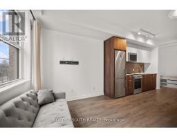 Welcome to Scout Condos! This charming 1+1 bedroom residence, complete with a storage locker, offers modern elegance and a bright, open layout. The space features beautiful laminate oak flooring throughout. Sunlight pours in through large windows, filling the home with warmth and offering stunning views. The kitchen is a chefs dream, with stainless steel appliances, quartz countertops, and a stylish backsplash. The spacious living and dining areas flow effortlessly, creating a perfect space for entertaining. The generous bedroom includes its own large windows and a walk-in closet. The versatile den is ideal for a home office or additional living space, perfectly suited for remote work. Enjoy a luxurious 4-piece bathroom with a deep soaking tub, and the convenience of ensuite laundry. Just steps from the Old Weston Rd streetcar stop, with quick access to the subway, you're also within walking distance to The Stockyards, Nations Experience Shopping Centre, and a variety of dining options. A short bus ride takes you to beautiful High Park, while Downtown Toronto is just a quick subway ride away. Location doesn't get better than this! (id:29237)