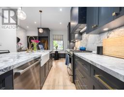 Experience elevated city living in this fully reimagined, ultra-high-end Leslieville home, where no detail has been overlooked. With over 2,200 sq. ft. of total living space (1,550 sq. ft. above grade + 700 sq. ft. underpinned basement), this residence blends sophisticated design with premium functionality. Every inch has been meticulously rebuilt, featuring spray foam insulation throughout, soundproofing on all floors, a brand-new roof, eavestroughs, soffits, windows, and doors all secured with high-security locking systems and security film for added peace of mind. Inside, the bright and open main floor sets the tone with custom millwork, solid white oak Mercier hardwood, and heated foyer floors. The show-stopping chefs kitchen features quartzite imported from Brazil, full stone backsplash, a Franke fireclay apron sink, a Brizo faucet, a custom stone range hood, and premium appliances. The space flows seamlessly into a stylish living area with built-ins, leading to a private, newly built backyard oasis with a custom deck and a brand-new Bona Vista 7-seater hot tub (2025with warranty).Upstairs, the serene primary suite features custom closets and a spa-inspired ensuite with designer fixtures, Toto toilets, and artisan tilework. 2 additional bedrooms and an upper-level laundry area provide exceptional convenience. The fully finished underpinned basement offers full 8' ceilings, a 4th Bedrm with ensuite, a rec space,& a massive finished storage room. Mechanical upgrades: new central air system (furnace, AC, ducts, humidifier),new sump pump, hot water tank (owned), making this home fully turnkey. Additional highlights include custom blinds (automatic in the primary and kitchen), new staircases and a beautifully landscaped front porch. Situated on a quiet, tree-lined street in the heart of Leslieville, steps from Queen street car, trendy cafes, boutiques, parks, top schools, & soon the Ontario Line coming soon. (id:29237)