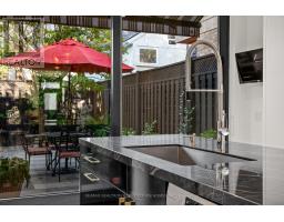 Welcome to 42 Berryman Street, a rare designer's residence built in 2003 and fully renovated in 2020, tucked away in the heart of Yorkville right off of Hazelton Ave. This fully customized home combines timeless Victorian architecture with contemporary European elegance, offering an unparalleled lifestyle for the most discerning buyer. The main floor is defined by a dramatic open-concept layout with soaring ceilings, a marble-slab feature wall with linear fireplace, and bespoke wrought-iron staircase detailing. Natural light pours through expansive windows and skylights, illuminating every refined finish. At the heart of the home, the chef's kitchen showcases full-height custom cabinetry, premium appliances, and a bold quartz waterfall island. Sleek pendant lighting and direct walkout access to a private courtyard make this space ideal for both everyday living and sophisticated entertaining. Upstairs, the vaulted primary suite offers a serene retreat with custom built-ins and a spa-inspired ensuite featuring a floating double vanity, dramatic marble shower. Additional bedrooms provide comfort and versatility, complemented by elegant baths finished with curated stone and designer fixtures. The fully finished lower level extends the living space with a flexible family room, private office, or gym complete with custom built-ins and a linear fireplace. Outdoors, a landscaped, maintenance-free courtyard offers a true urban sanctuary with granite tiling, privacy fencing, gas BBQ station-perfect for alfresco gatherings. Every detail at 42 Berryman has been carefully curated to deliver a residence of exceptional style, comfort, and sophistication. (id:29237)
