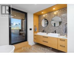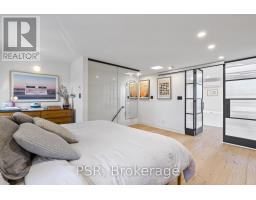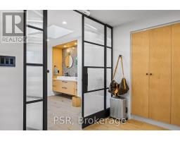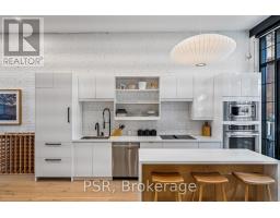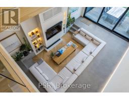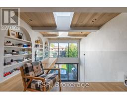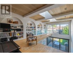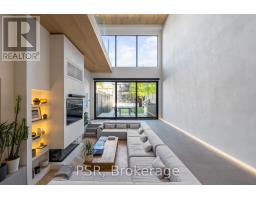 Discover an extraordinary architectural residence on Palmerston Avenue, one of Trinity Bellwoods' most sought-after streets. With history dating back to the 1860s, the home has gone through an extensive transformation, including a remarkable custom addition crafted by Whitaker Construction, a firm widely regarded as one of the city's leading builders, elevating it into a true design landmark. Featured earlier this year in the Toronto Star in an article titled "Is this the coolest living room in Toronto?" the answer is, yes. The main living space showcases striking 20-foot ceilings anchored by a sprawling sunken lounge, designed with a clean aesthetic that blends warmth with modern design. With east and west exposure, the combination of floor-to-ceiling glass and two large skylights allows natural light to pour through the entire home. The property features meticulous millwork in natural oak, micro-cement walls, heated concrete floors, and recessed lighting that together create a sense of calm sophistication. A beautifully designed mezzanine level, part of the custom addition overlooks the main living space and features a serene library with arched custom shelving, creating an inspiring, light-filled vantage point with views of the city skyline. This thoughtfully planned 3-bedroom residence includes an entire third level dedicated to the primary retreat, featuring a spa-like ensuite that extends to an expansive private rooftop terrace, partially covered and perfectly positioned for Toronto skyline and CN Tower views. An oversized double-sided 1.5 car garage provides exceptional functionality, accommodating two smaller vehicles or offering ample additional space. The lower level includes a washroom and a dedicated area ideal for storage. Celebrating craftsmanship and innovation at every turn, every element has been curated with exceptional intention, resulting in a home that is both artful and livable, an inspired piece of architecture rarely found in the city. (id:29237)