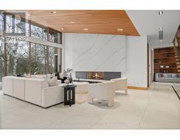 West Coast Inspired - Architecturally Significant Custom Residence. Designer Palette And Nestled At Cul-De-Sacs End. In Perfect Harmony Of Sleek Design And Timeless Modern Elegance. Picturesque Natural Treed Setting Overlooking Private Ravine Views. This Home Boasts An Open-Concept Floor Plan, Soaring Ceilings, Floor-To-Ceiling Windows And Cascading Natural Light. Designed For Both Luxury, Functionality & Family Entertainment Being Amenity Rich With An Exciting Interior Slide From Main Floor To Lower Level (Not Just For Kids). The Main Living Area Is An Entertainers Dream, Featuring A Sophisticated Living Room With A Sleek Wood-Burning Fireplace And A Chefs Kitchen Outfitted With Top-Of-The-Line Appliances, Refined Finishes And Eating Area. The Spacious Dining Area Is Equally Impressive, Providing The Perfect Setting For Hosting. The Primary Suite Is A Serene Retreat, Offering Floor-To-Ceiling Windows, A Walkout To The Deck, A Spa-Like Ensuite, And A Large Walk-In Closet. Additional Bedrooms Are Generously Sized, Each Featuring Walk-In Closets And Beautifully Designed Private Ensuites Washrooms. The Expansive Lower Level Provides Exceptional Versatility, Complete With A Large Recreation Room That Opens To The Backyard And Overlooks A Scenic Ravine, Making It An Ideal Space For Both Relaxation And Entertaining. Step Outside To Discover A Serene Backyard Oasis, Backing Onto A Lush Ravine That Offers Both Privacy And Breathtaking Natural Views. This Home Seamlessly Blends Indoor And Outdoor Living. This Rare Modern Retreat Is Situated Within Exclusive Neighbourhood With Convenient Access To Top-Tier Amenities, Renowned Park, Public And Private Schools, Shops And Dining. (id:29237)