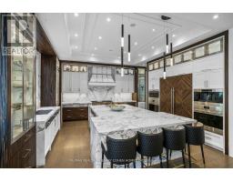 Crafted Over 8,000 Sqft. Of Unparalleled Living Space, This Exceptional Custom-Built Residence Exemplifies Masterful Craftsmanship, W/No Expense Spared In Achieving Ultimate Elegance. Featuring 5 Beds & 8 Baths & E-L-E-V-A-T-O-R. The Architecturally Distinctive Exterior Is Adorned W/Indiana-Cut Limestone, Spanning 9-Car Heated Circular Driveway And 3 Heated Tall Garages. An Impressive 22' Grand Entrance Hall Leads To Exemplary Principal Rooms Enhanced By High-End Fixtures, Natural Oak Floors, Custom Crown Moulding, Fibreglass-Panelled & Marble Natural Stone Finishes Throughout All Three Levels.The Private Office, Enclosed By Double Glass Doors & Finished With Full Custom Wood Panelling & B/I Shelving, Opens To An Exquisitely Appointed Great Room W/11' Ceiling Heights, An Expanded Linear Gas Fireplace, A High-End Speaker System And W/O Access To The Terrace.The Gourmet Chef's Kitchen Showcases A Spectacular Marble Countertop & Backsplash, Top-Tier B/I Appliances, Custom Cabinetry & Premium Hardware.The Primary Suite Exudes Grandeur W/12' Coffered Ceiling, A Custom Wall Unit, Fireplace & A Boutique-Quality Walk-In Closet Featuring A Central Island & B/I Makeup Desk. The Resplendent 7Pcs Ensuite Is Crafted W/Magnificent Book-Matched Marble Stone On The Floors & Walls, Complete W/Heated Flooring & Custom-Designed His/Hers Vanities. 4 Additional Bedrooms Feature B/I Beds W/Custom Headboards, Ensuites W/ Natural Stone Vanities, & 3 Opulent Walk-In Closets.The Lavish Entertainer's Basement Offers A Recreation Room W/Heated Floors, Integrated Speakers, A Steam Fireplace, Built-In Bench Seating, A Custom-Designed Wet Bar, & A Glass Wine Room. The Gym Includes Its Own Washroom, Mirrored Wall, & Beverage Cooler. This Functional Basement Walks Out To A Professionally Landscaped Backyard Oasis, Complete W/ An In-Ground Saltwater Pool Featuring A Built-In Jacuzzi & Lounge Area Highlighted By A California-Style Gas Fireplace, BBQ, Waterfall, & Ample Space For Outdoor Entertaining. (id:29237)
