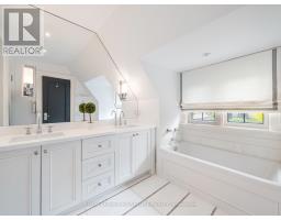 This landmark Tudor residence is located on one of the most prestigious streets in Forest Hill South. Owned by only two families since its original construction, the home has been taken back to the studs and redesigned with an uncompromising commitment to quality. Every element has been elevated blending timeless architectural charm with refined, modern finishes. Offering over 5,000 sq.ft. above grade (plus a fully finished lower level), the home opens with a grand marble-clad foyer framed by classic wood-panelled walls. The main level includes formal living and family rooms, both with gas fireplaces, and an entertainers dream kitchen featuring marble countertops and backsplash, gas-burning stove, oversized island, and top-tier built-in appliances. The formal dining room comfortably seats 12 and connects seamlessly to a private, landscaped backyard terrace. The second level is anchored by a tranquil primary suite with dual walk-in closets, a spa-inspired five-piece ensuite, and a gas fireplace. A second bedroom offers its own ensuite, dressing area, and an adjacent home office. The third floor features three more bedrooms with custom built-ins and a spacious family/rec room. The lower level includes a nanny/in-law suite, custom wine cellar, gym, laundry, storage, and a mudroom with direct access to the built-in two-car garage and private side entrance. Located just moments from Forest Hill Village, top-rated schools, and the area's finest parks and amenities, this is a rare opportunity to own one of Toronto's most iconic and sophisticated homes. (id:29237)