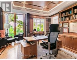 Client RemarksIf you are looking for quiet street and a large private lot, you've found your next home! This remarkable custom-built residence offers a perfect balance of elegance, comfort, and functionality across three levels of thoughtfully designed living space. The main floor welcomes you with a sophisticated living room featuring soaring ceiling height of over 20 ft with a dramatic floor to ceiling window and a gas fireplace. A formal dining room with adjoining servery is enhanced with built-in speakers and glass doors, creating the ideal setting for entertaining. Two offices provide flexible work-from-home options, while the inviting family room, with its two-way fireplace and walk-out to the garden, seamlessly connects to the chefs kitchen. This culinary space is equipped with a centre island, stainless steel appliances, and a built-in desk, while the adjoining breakfast area with room for both casual meals and a cozy seating area that shares the fireplace and opens directly to the garden. Upstairs, the primary suite offers a true retreat with a sitting room and a walk-out that overlooks the rear grounds, walk-in closet, and a luxurious six-piece ensuite. Additional bedrooms each feature their own sitting area, walk-in or built-in closets, and private ensuites, with unique enhancements including hardwood flooring and custom built-ins. The lower level is designed for recreation and entertainment, highlighted by a large room with a built-in bar, gas fireplace, and garden walk-out. An exercise room with mirrored walls and built-in speakers, plus a media room for a full theatre experience, add to the lifestyle appeal. Two additional bedrooms with private ensuites, one of two laundry rooms, a three-piece bath and garden walk-out. The backyard oasis is beyond description with an outdoor BBQ, stunning water feature, pool, hot tub and covered pergola for al fresco dining. Privacy and lush landscaping. This home is a must see! (id:29237)