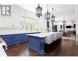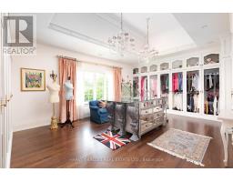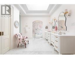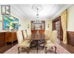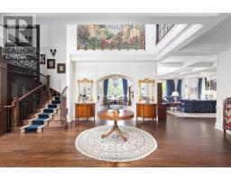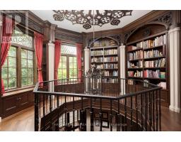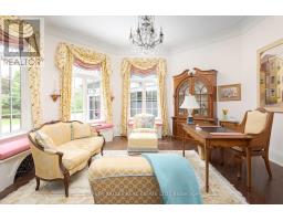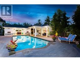 From vision to fruition, 8 Swansdown Drive stands as a truly unique and masterfully built residence. Every element was carefully chosen with intention, resulting in a home that exudes sophistication, comfort, and timeless beauty.Set on a secluded, lush lot in one of Torontos most prestigious neighbourhoods, the property offers unmatched privacy. A grand circular heated driveway welcomes you and your guests with ease, while a three-car garage securely houses your most prized possessions. The striking freestanding waterfall and manicured gardens create an instant sense of calm and retreat from the city.Inside, the double solid-oak doors open to a breathtaking two-storey foyer with soaring ceilings and open sightlines to the stunning rear gardens. The elegant living room features a wood-burning fireplace and retractable Floridian-style glass doors that open to a stone patio for al fresco dining. The sun-drenched kitchen and breakfast room overlook the lush grounds, while the formal dining room connects via a butlers pantry.The garden solarium is perfect for nurturing plants year-round. Additional main floor highlights include a cheerful office, art studio with water access, and a one-of-a-kind octagonal library with handcrafted detailing, a ceiling medallion, and hidden staircase.The second floor is accessed by a sweeping staircase or a wrought-iron Parisian-style elevator. A skylit hallway leads to four generous bedrooms, each with its own ensuite. A separate two-piece bath, laundry room, and pet spa complete this level.The lower level offers an impressive array of spaces: gym, yoga room, sauna, rec room, large storage, study, soundproof music room, guest suite, and more.Outdoors, enjoy over a million dollars in landscaping, a chlorine pool, fire pit, two covered pavilions (one with bar and bath), and stone pathways weaving through a magical setting.A rare offering. Welcome home. (id:29237)