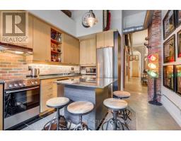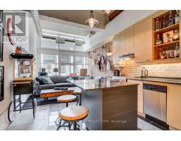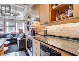 This partially furnished 1+1 Bedrm Loft Is An Absolute Must See That Has All The "I Wants", Open Concept W/12'Ceilings W/ Exposed Ductwork, Concrete Flrs & 8' Wood Drs Sliding On Metal Barn Rollers Throughout. Uniquely Designed W/A Metal Ladder In The Bedrm To An Upper Level Studio That Can Be Used As A 2nd Bedrm, An Office Or Additional Wardrobe Space. The Industrial Vibe Kitchen Has Granite Countertops & Island, Wood Cabinetry W/ Undermount Lighting, & Brick Backsplash Extends Into The Living Room Accent Wall .Loft Style, Ss Apps, Granite Countertops, 12' Ceilings, Concrete Flrs, Exposed Ductwork, 1 Parking, and EV charger available. (id:29237)