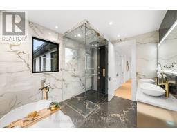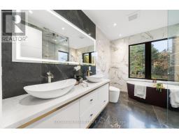 Unbeliavble opportunity! This new custom-built masterpiece on a premium 60 ft lot in 1 of the area's most desirable neighborhoods. Unimagineable value for quality and craftsmanship.Extraordinary residence blends modern architecture, elegant design offering a lifestyle of comfort and sophistication. Every inch of this home has been thoughtfully curated for those who appreciate fine living and contemporary elegance. Step inside to a breathtaking main level featuring 11ft ceilings, intricate coffered details, and halogen lighting that creates an airy, inviting atmosphere.The great room is the showpiece boasting a striking slab fireplace wall, custom entertainment area, and oversized picture windows with tranquil treetop views.The chef-inspired kitchen is both functional and stunning, complete with an oversized waterfall island, stone countertops, top-of-the-line stainless steel appliances, and a seamless flow to the dining and family areas ideal for gatherings large or small. The custom glass staircase railing, imported porcelain finishes, and designer lighting add timeless appeal throughout Upstairs, discover 4 spacious bedrooms, each with custom closets and refined finishes.The primary suite is a serene retreat with a sculpted accent wall, tray ceiling, and a 7pc spa-inspired ensuite featuring floor-to-ceiling porcelain, gold fixtures, and a body-spray shower system for the ultimate in relaxation. The fully finished lower level offers a wet bar with beverage fridge & a stone countertop w breakfast bar, perfect for entertaining or extended family. 5th bedroom and full designer washroom complete this space. Additional highlights include a video camera doorbell, designer lighting & countless custom upgrades. Step into your own private oasis a spacious, park-like backyard surrounded by mature trees, offering both privacy and serenity. A true showpiece experience the beauty, quality, and luxury, Don't miss the chance to own a stunning property like this in todays market! (id:29237)
